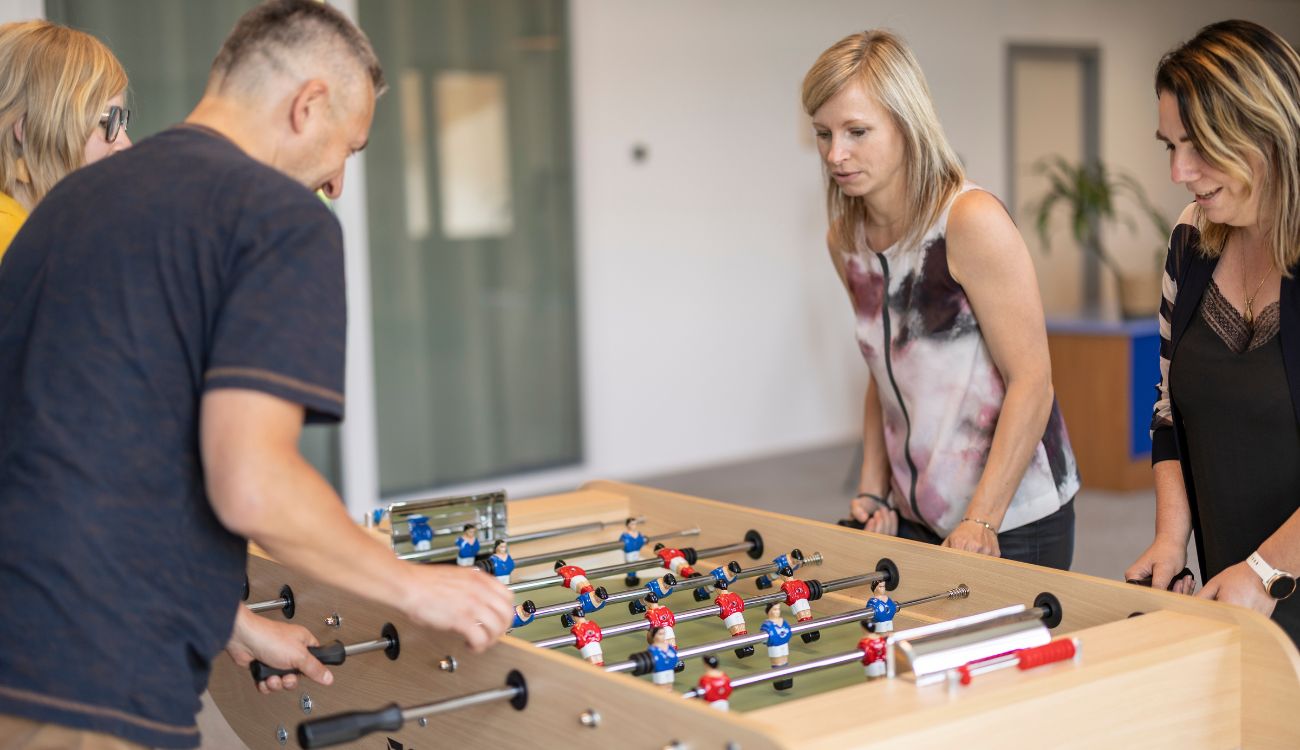 70 m² pour te relaxer : baby-foot, fauteuils, poufs, terrasse extérieure couverte.